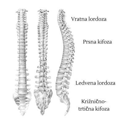 Gre za štiri fiziološke ali naravne krivine, ki jih poznamo pod imeni ledvena in vratna lordoza, prsna in križnično-trtična kifoza. Ob njihovi odsotnosti ali odsotnosti le ene pa nam povzročajo velike težave.