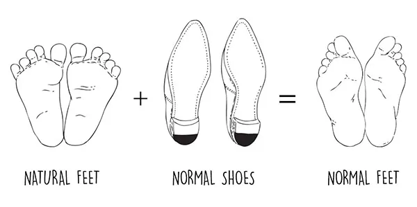“Moderen” čevelj stiska prste skupaj in umetno podpira stopalo in stopalne loke. Ko smo v takem čevlju več let, stopala začnejo izgledati kot čevlji.